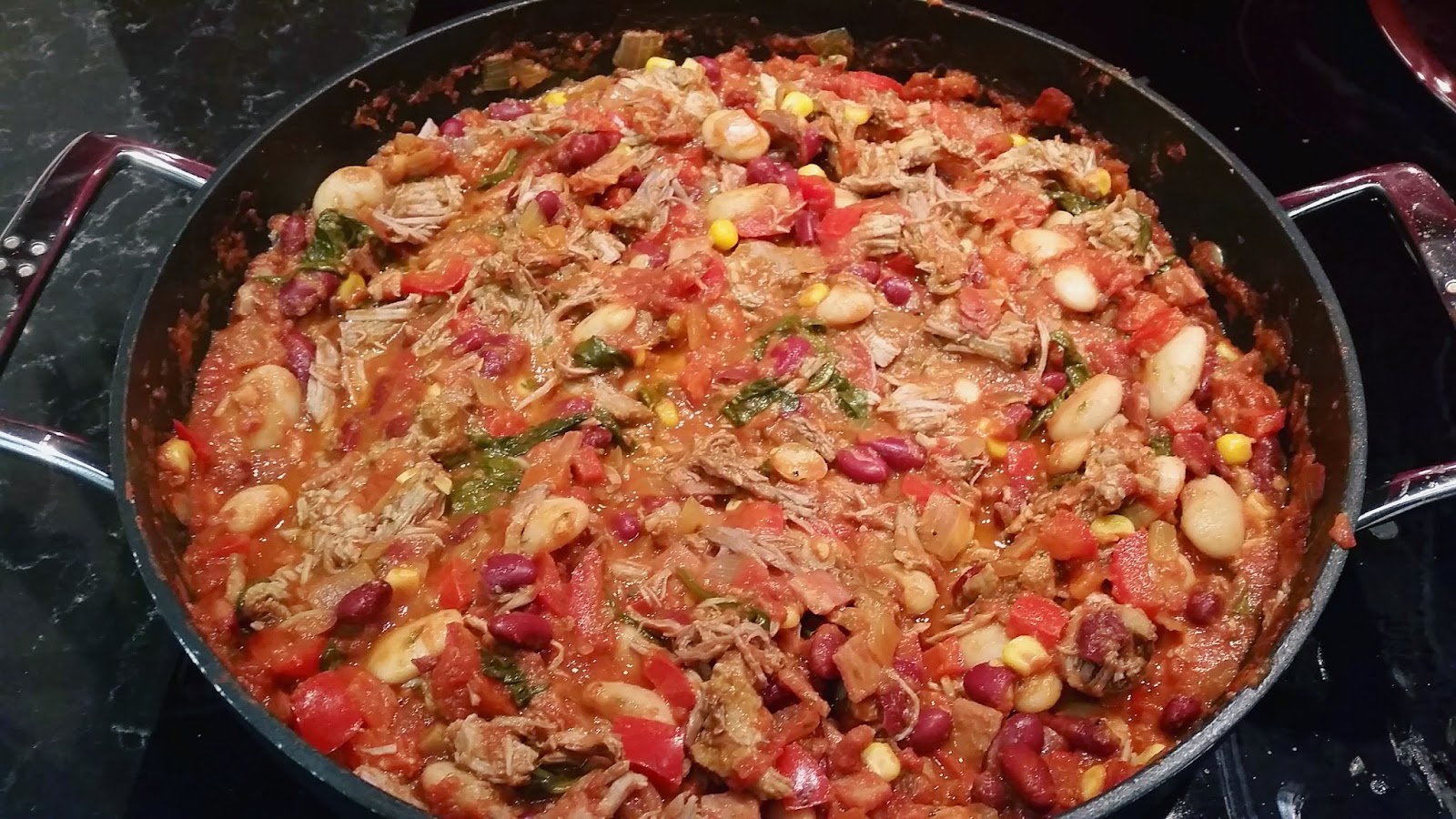 - Stir through the pulled pork, beans and spinach. Cook, stirring for a further 5 minutes.