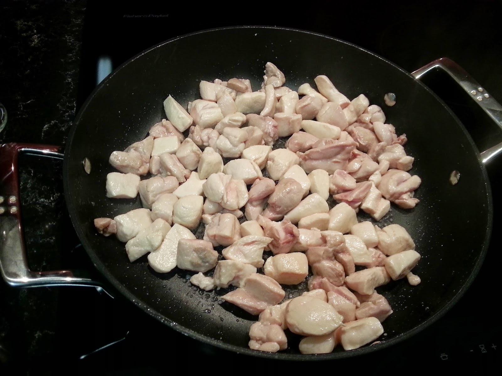 - Approx. 600g chicken breasts/thighs, chopped. I had 1 chicken breast and 2 thighs in the freezer, so used those!
